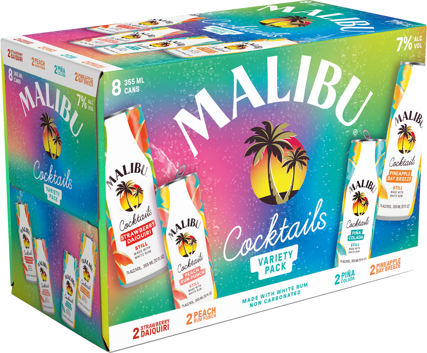 "Easy to take with you on the go or when hanging out with friends. Contains two 12oz cans each of four different flavors: Strawberry and Coconut, Pineapple & Coconut, Passionfruit and Coconut and Watermelon. Sip on a splash of flavor-packed fun!" Producer Notes