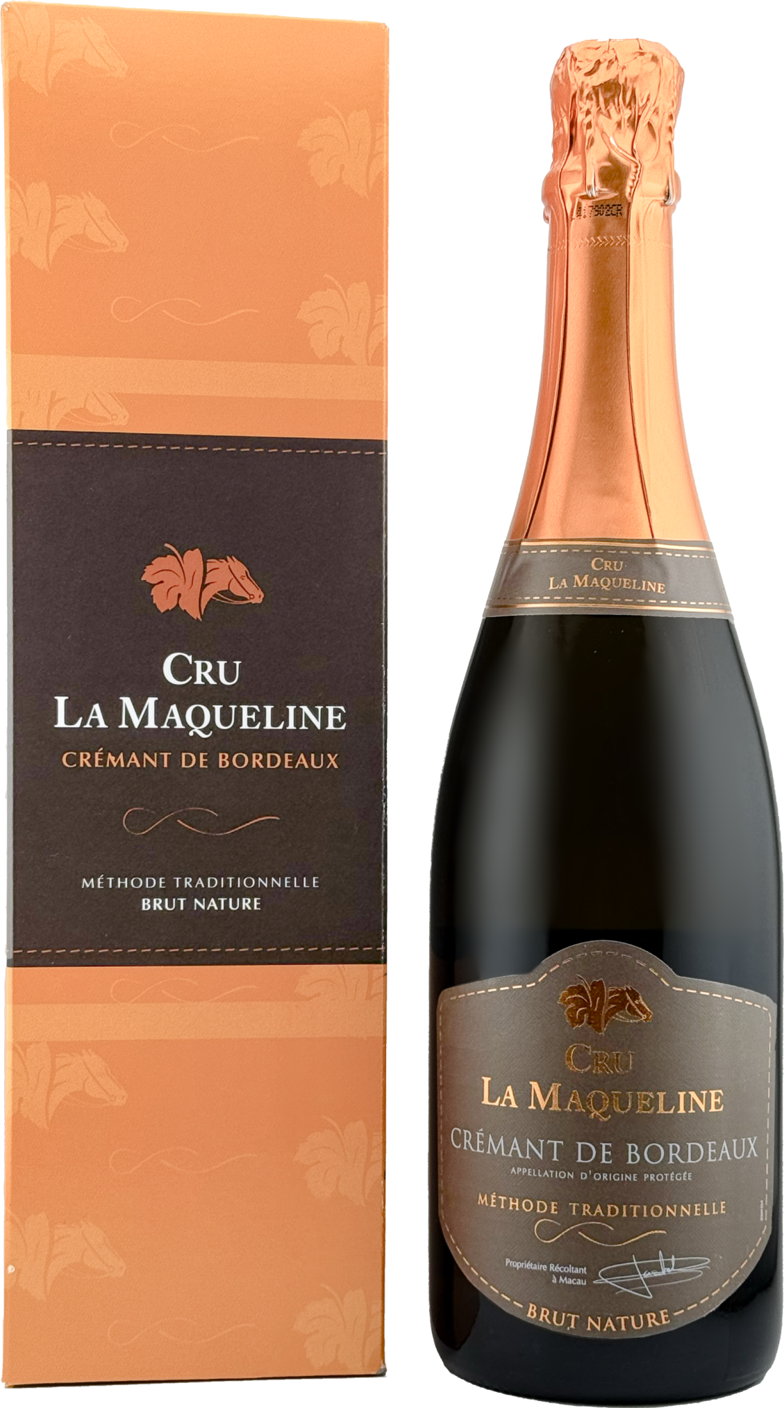 "It was at Cru la Maqueline, in 1892, that Nathaniel Johnston began his first experiments in the Champagnisation of Bordeaux wines. Over 120 years later, Castel Châteaux & Grands Crus is bringing this time-honoured tradition back to life, launching a undosed Crémant de Bordeaux, aged in bottles on slats for 24 months. The blend is majority Merlot with some additional Petit Verdot." Winemaker's Notes